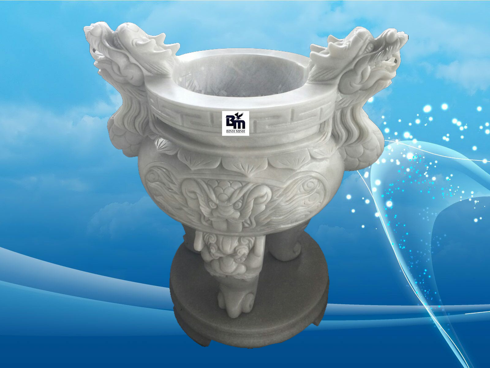 LƯ HƯƠNG PHẬT GIÁO, CAO 100CM, ĐÁ TRẮNG (MARBLE), XUẤT XỨ NGHỆ AN