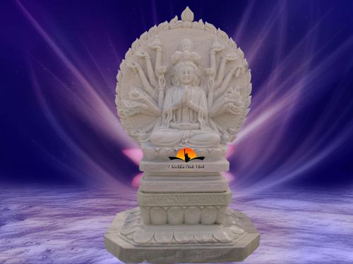 Thiên Thủ Thiên Nhãn Quán Thế Âm Bồ Tát là biểu hiện cho sự tu luyện khổ hạnh và lòng nhân từ bác ái phổ độ chúng sinh. Chính vì thế người có danh hiệu là Đại từ Đại bi Quan thế âm bồ tát. Người luôn bên cạnh, cứu độ và mang lại bình an cho nhân gian. Tượng được làm bằng đá trắng nguyên khối, Diện tượng đẹp, các đường nét được chạm khắc tỉ mỉ và tinh xảo. Cam kết sản phẩm được làm từ 100% đá tự nhiên, nguyên khối. Cam kết hoàn tiền 100%nếu phát hiện sản phẩm là bột đá, hàng giả, hàng kém chất lượng CTY TNHH TM DV ĐIÊU KHẮC BÌNH MINH xin gửi tới quý khách hàng, đối tác Các sản phẩm được làm bằng chất liệu đá với kiểu dáng mẫu mã đẹp, chạm khắc tinh xảo, được khai thác từ mỏ đá tự nhiên các sản phẩm được chế tác từ các loại Ngọc, đá xanh, đá trắng, đá vàng, đá đen, đá cẩm thạch… được lựa chọn kỹ lưỡng từ những mỏ đá tốt nhất trước khi được đưa về xưởng gia công chế tác. Tại CTY của chúng tôi các nghệ nhân được đào tạo từ các trường Đại học, như trường đại học mỹ thuật, kiến trúc...Có nhiều năm kinh nghiệm. Nhiều năm qua các tác phẩm do CTY TNHH TM DV ĐIÊU KHẮC BÌNH MINH thực hiện đã được nhiều khách hàng, đối tác trong nước, quốc tế tin tưởng lựa chọn và được đánh giá cao. Chính vì điều đó Với tiêu chí: “Chữ Tín Vững Trọn Niềm Tin “ CTY chúng tôi luôn đặt Uy tín – Chất lượng lên hàng đầu. Mỗi Sản phẩm CTY làm ra phải đạt chất lượng tốt nhất, mẫu mã đẹp nhất, tính mỹ thuật cao nhất. Ngoài ra Cty chúng tôi luôn đảm bảo thời hạn – Giao hàng tận nơi trong và ngoài nước. Chúng tôi luôn có những chính sách ưu đãi giá cả cạnh tranh, ngoài ra chúng tôi hoàn toàn chịu trách nhiệm về các công đoạn thi công và bảo hành sản phẩm do chính mình làm ra. Cty chúng tôi luôn luôn lỗ lực và cố gắng nhiều hơn nữa để mỗi ngày có được nhiều sản phẩm đẹp hơn, chất lượng hơn, mẫu mã đẹp hơn, hoàn hảo hơn, tinh xảo hơn tạo điều kiện thuận lợi cho quý khách hàng có sự được lựa chọn về những sản phẩm tốt nhất mỹ thuật tốt nhất, dịch vụ tốt nhất. Quý khách hàng có nhu cầu xin vui lòng liên hệ: CTY TNHH TM DV Điêu Khắc Bình Minh Địa Chỉ: 797A Quốc Lộ 13 P Hiệp Bình Phước Q Thủ Đức TP HCM ( Ngay Góc Ngã 4 Bình Phước) Hotline : 0989045052 Mr Tư - 0908448280 Ms Hiếu