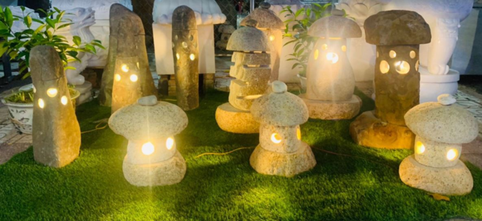 Những chiếc đèn đá được chế tác từ đá tự nhiên nguyên khối, với những đường nét chạm khắc tinh xảo, tỉ mỉ, thể hiện sự khéo léo và tài hoa của các nghệ nhân. Ánh sáng dịu nhẹ phát ra từ những chiếc đèn đá tạo nên một không gian ấm cúng, thư giãn, mang đậm phong cách Nhật Bản.