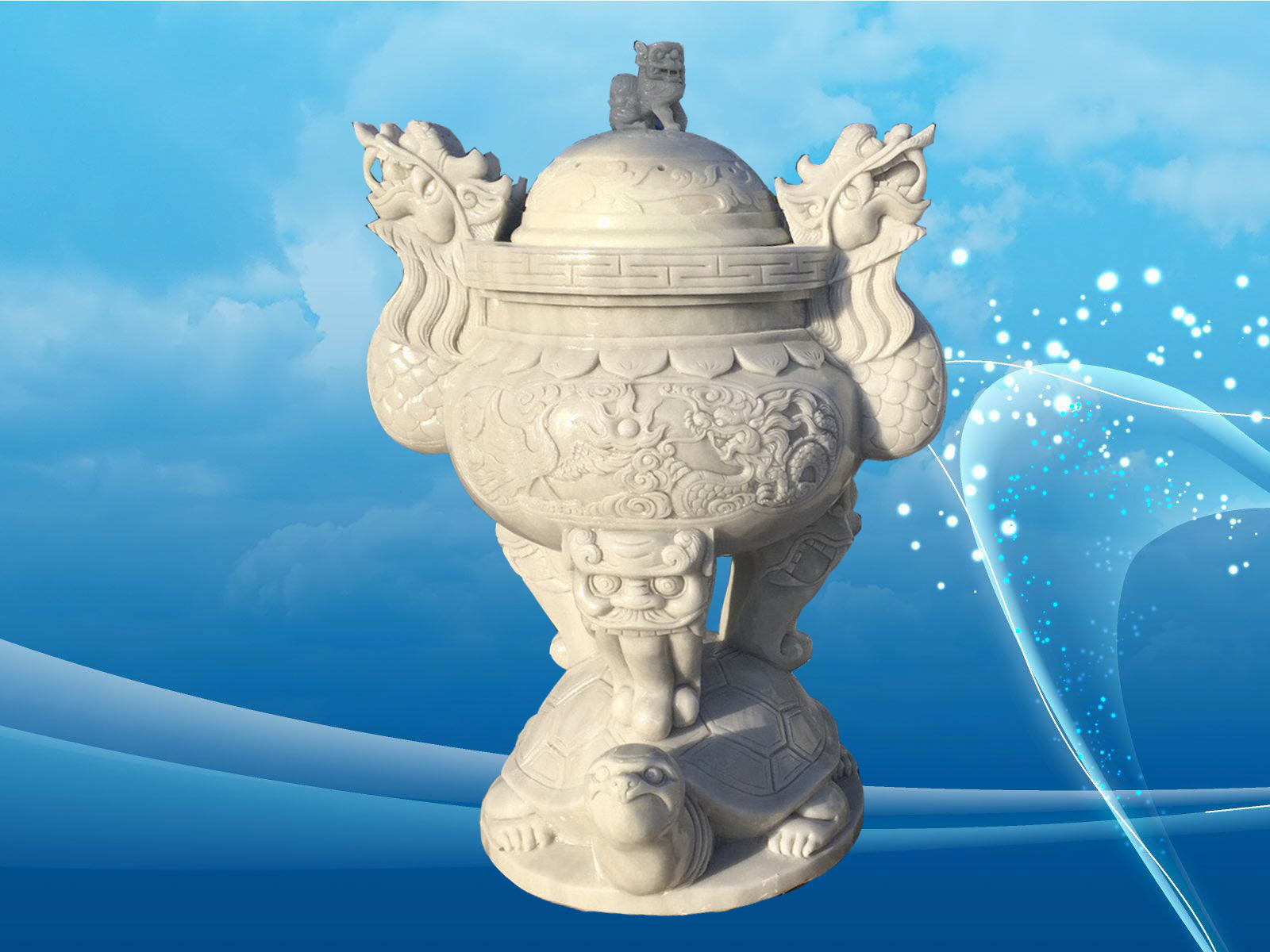 LƯ HƯƠNG PHẬT GIÁO, CAO 140CM, ĐÁ TRẮNG (MARBLE), XUẤT XỨ NGHỆ AN