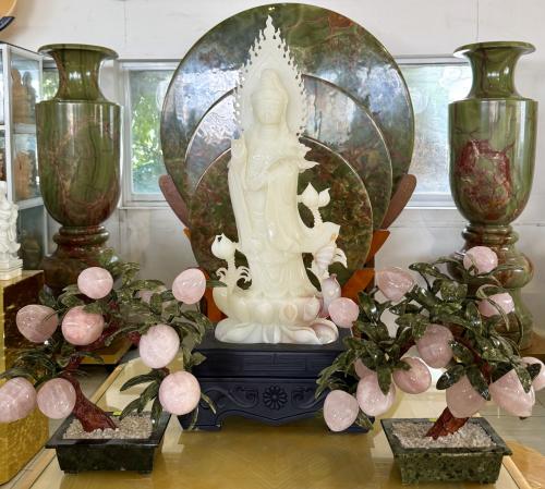 Lục bình đá ngọc Pakistan là sản phẩm thủ công cao cấp, được chế tác từ loại đá ngọc tự nhiên quý hiếm, nổi tiếng với màu sắc xanh lục đặc trưng và vân đá tinh tế. Sản phẩm mang đậm giá trị phong thủy, biểu trưng cho tài lộc, bình an và sự thịnh vượng. Với thiết kế sang trọng, lục bình đá ngọc Pakistan không chỉ là vật phẩm trang trí đẳng cấp mà còn thể hiện sự tinh tế và gu thẩm mỹ của chủ nhân. Phù hợp để trưng bày trong phòng khách, phòng làm việc hoặc không gian tâm linh.