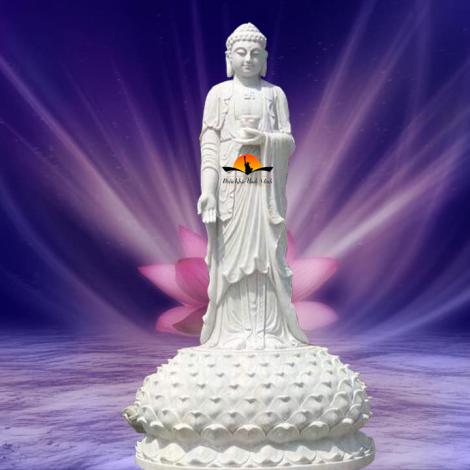 Đức Phật A Di Đà là vị giáo chủ ở cõi cực lạc phương tây. A Di Đà (theo tiếng Sankrit có nghĩa là ánh sáng vô lượng) – vô lượng thọ. Tức rằng hào quang và tuổi thọ của ngài không thể lường được. Đến thế giới này với vai trò cứu độ chúng sinh. Sự tích, tiền thân ngài A DI ĐÀ Phật Khi Phật Thế Tự Tại Vương, có một vị quốc vương tên Kiều Thi Ca. Nghe Phật thuyết pháp liền bỏ ngôi vua xuất gia làm Tỳ Kheo, hiệu là Pháp Tạng. Một hôm ngài đảnh lễ Phật cầu xin chứng minh cho ngài phát 48 lời nguyện. Chính bởi nguyện lực ấy, sau này ngài thành Phật. Hiệu là A Di Đà Phật ở cõi cực lạc (Kinh Vô Lượng Thọ) Lại một thuở xa xưa ở cõi Sam Đề Lam, có ông vua tên là Vô Tránh Niệm. Do đại thần Bảo Hải (Đại thần Bảo Hải là tiền thân của Phật Thích Ca) khuyến tiến nhà vua gặp đức Phật Bảo Tạng thành tâm cúng dường quy y thọ giáo. Nhà vua phát nguyện sau này thành Phật sẽ làm giáo chủ một cõi cực kỳ trang nghiêm thanh tịnh để giáo hóa chúng sanh. Đức Phật Bảo Tạng thọ ký cho Ngài sau này sẽ thành Phật. Hiệu A Di Đà, cõi nước tên cực lạc ở phương Tây. Hiện giờ ngài đã thành Phật và đang thuyết pháp ở đó (Kinh Bi Hoa) Hạnh Nguyện Đức Phật A Di Đà xưa phát 48 lời nguyện lớn, trong đó có lời nguyện sẵn sàng tiếp dẫn chúng sanh nào niệm danh hiệu của ngài. Dù người ấy chỉ niệm mười câu danh hiệu của ngài, ngài cũng tiếp dẫn vãng sanh về cõi cực lạc. Biểu Tượng Đức Phật A Di Đà thường có hai biểu tượng: Thế tượng ngồi kiết già trên tòa sen tay kiết định ấn, tương tự như Phật Thích Ca. Hình Ảnh Tượng Phật A di đà Thế tượng đứng trên hoa sen lơ lửng trong hư không, bên dưới là bể cả sóng dậy chập chồng, mắt ngài nhìn xuống, tay phải đưa lên ngang vai, tay trái duỗi xuống như sẵn sàng tiếp dẫn người vãng sanh. Tượng ấy gọi là tượng Phật A Di Đà phóng quang tiếp dẫn. Quý khách hàng có nhu cầu xin vui lòng liên hệ: CTY TNHH TM DV Điêu Khắc Bình Minh Địa Chỉ: 797A Quốc Lộ 13 P Hiệp Bình Phước Q Thủ Đức TP HCM ( Ngay Góc Ngã 4 Bình Phước) Hotline : 0989045052 Mr Tư - 0908448280 Ms Hiếu