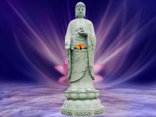 Đức Phật A Di Đà là vị giáo chủ ở cõi cực lạc phương tây. A Di Đà (theo tiếng Sankrit có nghĩa là ánh sáng vô lượng) – vô lượng thọ. Tức rằng hào quang và tuổi thọ của ngài không thể lường được. Đến thế giới này với vai trò cứu độ chúng sinh. Sự tích, tiền thân ngài A DI ĐÀ Phật Khi Phật Thế Tự Tại Vương, có một vị quốc vương tên Kiều Thi Ca. Nghe Phật thuyết pháp liền bỏ ngôi vua xuất gia làm Tỳ Kheo, hiệu là Pháp Tạng. Một hôm ngài đảnh lễ Phật cầu xin chứng minh cho ngài phát 48 lời nguyện. Chính bởi nguyện lực ấy, sau này ngài thành Phật. Hiệu là A Di Đà Phật ở cõi cực lạc (Kinh Vô Lượng Thọ) Lại một thuở xa xưa ở cõi Sam Đề Lam, có ông vua tên là Vô Tránh Niệm. Do đại thần Bảo Hải (Đại thần Bảo Hải là tiền thân của Phật Thích Ca) khuyến tiến nhà vua gặp đức Phật Bảo Tạng thành tâm cúng dường quy y thọ giáo. Nhà vua phát nguyện sau này thành Phật sẽ làm giáo chủ một cõi cực kỳ trang nghiêm thanh tịnh để giáo hóa chúng sanh. Đức Phật Bảo Tạng thọ ký cho Ngài sau này sẽ thành Phật. Hiệu A Di Đà, cõi nước tên cực lạc ở phương Tây. Hiện giờ ngài đã thành Phật và đang thuyết pháp ở đó (Kinh Bi Hoa) Hạnh Nguyện Đức Phật A Di Đà xưa phát 48 lời nguyện lớn, trong đó có lời nguyện sẵn sàng tiếp dẫn chúng sanh nào niệm danh hiệu của ngài. Dù người ấy chỉ niệm mười câu danh hiệu của ngài, ngài cũng tiếp dẫn vãng sanh về cõi cực lạc. Biểu Tượng Đức Phật A Di Đà thường có hai biểu tượng: Thế tượng ngồi kiết già trên tòa sen tay kiết định ấn, tương tự như Phật Thích Ca. Hình Ảnh Tượng Phật A di đà Thế tượng đứng trên hoa sen lơ lửng trong hư không, bên dưới là bể cả sóng dậy chập chồng, mắt ngài nhìn xuống, tay phải đưa lên ngang vai, tay trái duỗi xuống như sẵn sàng tiếp dẫn người vãng sanh. Tượng ấy gọi là tượng Phật A Di Đà phóng quang tiếp dẫn. Quý khách hàng có nhu cầu xin vui lòng liên hệ: CTY TNHH TM DV Điêu Khắc Bình Minh Địa Chỉ: 797A Quốc Lộ 13 P Hiệp Bình Phước Q Thủ Đức TP HCM ( Ngay Góc Ngã 4 Bình Phước) Hotline : 0989045052 Mr Tư - 0908448280 Ms Hiếu