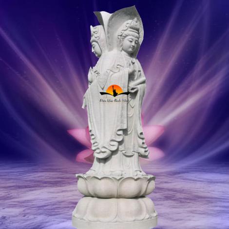 Phật bà quan âm là biểu hiện cho sự tu luyện khổ hạnh và lòng nhân từ bác ái phổ độ chúng sinh. Chính vì thế người có danh hiệu là Đại từ Đại bi Quan thế âm bồ tát. Người luôn bên cạnh, cứu độ và mang lại bình an cho nhân gian. Tượng được làm bằng đá granite, Diện tượng đẹp, các đường nét được chạm khắc tỉ mỉ và tinh xảo. Cam kết sản phẩm được làm từ 100% đá tự nhiên. Cam kết hoàn tiền 100% nếu phát hiện sản phẩm là bột đá, hàng giả, hàng kém chất lượng CTY TNHH TM DV ĐIÊU KHẮC BÌNH MINH xin gửi tới quý khách hàng, đối tác Các sản phẩm được làm bằng chất liệu đá với kiểu dáng mẫu mã đẹp, chạm khắc tinh xảo, được khai thác từ mỏ đá tự nhiên các sản phẩm được chế tác từ các loại Ngọc, đá xanh, đá trắng, đá vàng, đá đen, đá cẩm thạch… được lựa chọn kỹ lưỡng từ những mỏ đá tốt nhất trước khi được đưa về xưởng gia công chế tác. Tại CTY của chúng tôi các nghệ nhân được đào tạo từ các trường Đại học, như trường đại học mỹ thuật, kiến trúc...Có nhiều năm kinh nghiệm. Nhiều năm qua các tác phẩm do CTY TNHH TM DV ĐIÊU KHẮC BÌNH MINH thực hiện đã được nhiều khách hàng, đối tác trong nước, quốc tế tin tưởng lựa chọn và được đánh giá cao. Chính vì điều đó Với tiêu chí: “Chữ Tín Vững Trọn Niềm Tin “ CTY chúng tôi luôn đặt Uy tín – Chất lượng lên hàng đầu. Mỗi Sản phẩm CTY làm ra phải đạt chất lượng tốt nhất, mẫu mã đẹp nhất, tính mỹ thuật cao nhất. Ngoài ra Cty chúng tôi luôn đảm bảo thời hạn – Giao hàng tận nơi trong và ngoài nước. Chúng tôi luôn có những chính sách ưu đãi giá cả cạnh tranh, ngoài ra chúng tôi hoàn toàn chịu trách nhiệm về các công đoạn thi công và bảo hành sản phẩm do chính mình làm ra. Cty chúng tôi luôn luôn lỗ lực và cố gắng nhiều hơn nữa để mỗi ngày có được nhiều sản phẩm đẹp hơn, chất lượng hơn, mẫu mã đẹp hơn, hoàn hảo hơn, tinh xảo hơn tạo điều kiện thuận lợi cho quý khách hàng có sự được lựa chọn về những sản phẩm tốt nhất mỹ thuật tốt nhất, dịch vụ tốt nhất. Quý khách hàng có nhu cầu xin vui lòng liên hệ: CTY TNHH TM DV Điêu Khắc Bình Minh Địa Chỉ: 797A Quốc Lộ 13 P Hiệp Bình Phước Q Thủ Đức TP HCM ( Ngay Góc Ngã 4 Bình Phước) Hotline : 0989045052 Mr Tư - 0908448280 Ms Hiếu