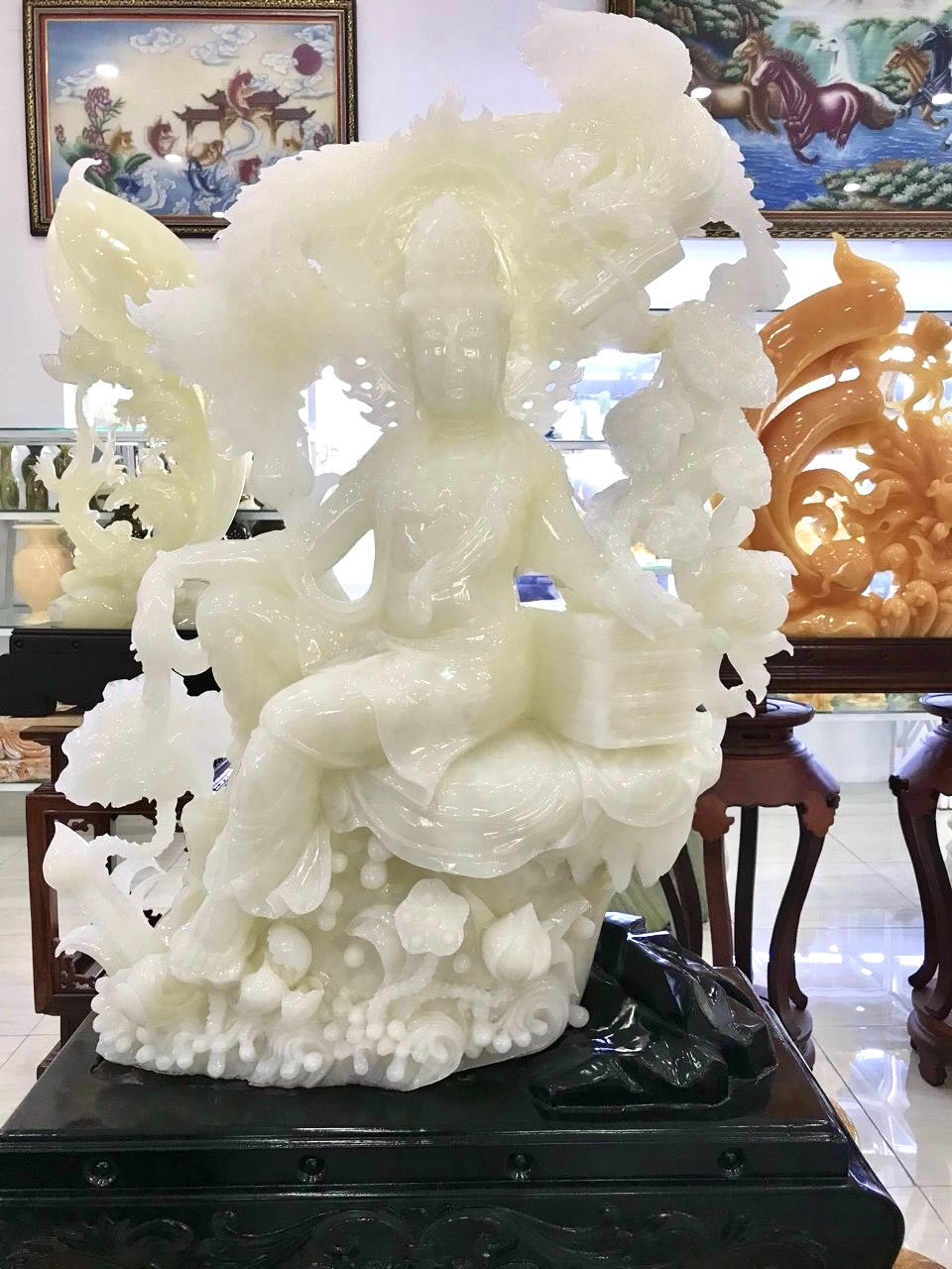Phật bà quan âm là biểu hiện cho sự tu luyện khổ hạnh và lòng nhân từ bác ái phổ độ chúng sinh. Chính vì thế người có danh hiệu là Đại từ Đại bi Quan thế âm bồ tát. Người luôn bên cạnh, cứu độ và mang lại bình an cho nhân gian. Tượng được làm bằng granite. Diện tượng đẹp, các đường nét được chạm khắc tỉ mỉ và tinh xảo. Cam kết sản phẩm được làm từ 100% đá tự nhiên. Cam kết hoàn tiền 100% nếu phát hiện sản phẩm là bột đá, hàng giả, hàng kém chất lượng CTY TNHH TM DV ĐIÊU KHẮC BÌNH MINH xin gửi tới quý khách hàng, đối tác Các sản phẩm được làm bằng chất liệu đá với kiểu dáng mẫu mã đẹp, chạm khắc tinh xảo, được khai thác từ mỏ đá tự nhiên các sản phẩm được chế tác từ các loại Ngọc, đá xanh, đá trắng, đá vàng, đá đen, đá cẩm thạch… được lựa chọn kỹ lưỡng từ những mỏ đá tốt nhất trước khi được đưa về xưởng gia công chế tác. Tại CTY của chúng tôi các nghệ nhân được đào tạo từ các trường Đại học, như trường đại học mỹ thuật, kiến trúc...Có nhiều năm kinh nghiệm. Nhiều năm qua các tác phẩm do CTY TNHH TM DV ĐIÊU KHẮC BÌNH MINH thực hiện đã được nhiều khách hàng, đối tác trong nước, quốc tế tin tưởng lựa chọn và được đánh giá cao. Chính vì điều đó Với tiêu chí: “Chữ Tín Vững Trọn Niềm Tin “ CTY chúng tôi luôn đặt Uy tín – Chất lượng lên hàng đầu. Mỗi Sản phẩm CTY làm ra phải đạt chất lượng tốt nhất, mẫu mã đẹp nhất, tính mỹ thuật cao nhất. Ngoài ra Cty chúng tôi luôn đảm bảo thời hạn – Giao hàng tận nơi trong và ngoài nước. Chúng tôi luôn có những chính sách ưu đãi giá cả cạnh tranh, ngoài ra chúng tôi hoàn toàn chịu trách nhiệm về các công đoạn thi công và bảo hành sản phẩm do chính mình làm ra. Cty chúng tôi luôn luôn lỗ lực và cố gắng nhiều hơn nữa để mỗi ngày có được nhiều sản phẩm đẹp hơn, chất lượng hơn, mẫu mã đẹp hơn, hoàn hảo hơn, tinh xảo hơn tạo điều kiện thuận lợi cho quý khách hàng có sự được lựa chọn về những sản phẩm tốt nhất mỹ thuật tốt nhất, dịch vụ tốt nhất. Quý khách hàng có nhu cầu xin vui lòng liên hệ: CTY TNHH TM DV Điêu Khắc Bình Minh Địa Chỉ: 797A Quốc Lộ 13 P Hiệp Bình Phước Q Thủ Đức TP HCM ( Ngay Góc Ngã 4 Bình Phước) Hotline : 0989045052 Mr Tư - 0908448280 Ms Hiếu