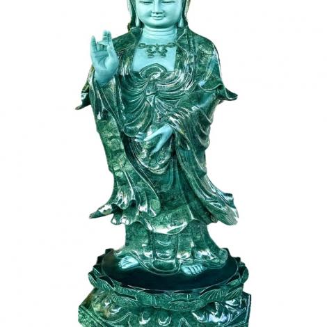 Phật bà quan âm là biểu hiện cho sự tu luyện khổ hạnh và lòng nhân từ bác ái phổ độ chúng sinh. Chính vì thế người có danh hiệu là Đại từ Đại bi Quan thế âm bồ tát. Người luôn bên cạnh, cứu độ và mang lại bình an cho nhân gian. Tượng được làm bằng granite. Diện tượng đẹp, các đường nét được chạm khắc tỉ mỉ và tinh xảo. Cam kết sản phẩm được làm từ 100% đá tự nhiên. Cam kết hoàn tiền 100% nếu phát hiện sản phẩm là bột đá, hàng giả, hàng kém chất lượng CTY TNHH TM DV ĐIÊU KHẮC BÌNH MINH xin gửi tới quý khách hàng, đối tác Các sản phẩm được làm bằng chất liệu đá với kiểu dáng mẫu mã đẹp, chạm khắc tinh xảo, được khai thác từ mỏ đá tự nhiên các sản phẩm được chế tác từ các loại Ngọc, đá xanh, đá trắng, đá vàng, đá đen, đá cẩm thạch… được lựa chọn kỹ lưỡng từ những mỏ đá tốt nhất trước khi được đưa về xưởng gia công chế tác. Tại CTY của chúng tôi các nghệ nhân được đào tạo từ các trường Đại học, như trường đại học mỹ thuật, kiến trúc...Có nhiều năm kinh nghiệm. Nhiều năm qua các tác phẩm do CTY TNHH TM DV ĐIÊU KHẮC BÌNH MINH thực hiện đã được nhiều khách hàng, đối tác trong nước, quốc tế tin tưởng lựa chọn và được đánh giá cao. Chính vì điều đó Với tiêu chí: “Chữ Tín Vững Trọn Niềm Tin “ CTY chúng tôi luôn đặt Uy tín – Chất lượng lên hàng đầu. Mỗi Sản phẩm CTY làm ra phải đạt chất lượng tốt nhất, mẫu mã đẹp nhất, tính mỹ thuật cao nhất. Ngoài ra Cty chúng tôi luôn đảm bảo thời hạn – Giao hàng tận nơi trong và ngoài nước. Chúng tôi luôn có những chính sách ưu đãi giá cả cạnh tranh, ngoài ra chúng tôi hoàn toàn chịu trách nhiệm về các công đoạn thi công và bảo hành sản phẩm do chính mình làm ra. Cty chúng tôi luôn luôn lỗ lực và cố gắng nhiều hơn nữa để mỗi ngày có được nhiều sản phẩm đẹp hơn, chất lượng hơn, mẫu mã đẹp hơn, hoàn hảo hơn, tinh xảo hơn tạo điều kiện thuận lợi cho quý khách hàng có sự được lựa chọn về những sản phẩm tốt nhất mỹ thuật tốt nhất, dịch vụ tốt nhất. Quý khách hàng có nhu cầu xin vui lòng liên hệ: CTY TNHH TM DV Điêu Khắc Bình Minh Địa Chỉ: 797A Quốc Lộ 13 P Hiệp Bình Phước Q Thủ Đức TP HCM ( Ngay Góc Ngã 4 Bình Phước) Hotline : 0989045052 Mr Tư - 0908448280 Ms Hiếu