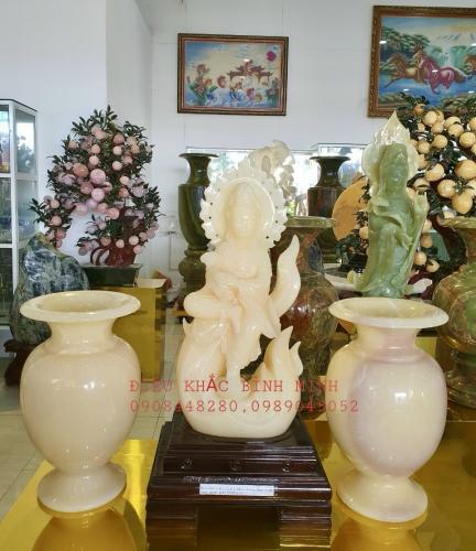 Phật bà quan âm là biểu hiện cho sự tu luyện khổ hạnh và lòng nhân từ bác ái phổ độ chúng sinh. Chính vì thế người có danh hiệu là Đại từ Đại bi Quan thế âm bồ tát. Người luôn bên cạnh, cứu độ và mang lại bình an cho nhân gian. Tượng được làm bằng granite. Diện tượng đẹp, các đường nét được chạm khắc tỉ mỉ và tinh xảo. Cam kết sản phẩm được làm từ 100% đá tự nhiên. Cam kết hoàn tiền 100% nếu phát hiện sản phẩm là bột đá, hàng giả, hàng kém chất lượng CTY TNHH TM DV ĐIÊU KHẮC BÌNH MINH xin gửi tới quý khách hàng, đối tác Các sản phẩm được làm bằng chất liệu đá với kiểu dáng mẫu mã đẹp, chạm khắc tinh xảo, được khai thác từ mỏ đá tự nhiên các sản phẩm được chế tác từ các loại Ngọc, đá xanh, đá trắng, đá vàng, đá đen, đá cẩm thạch… được lựa chọn kỹ lưỡng từ những mỏ đá tốt nhất trước khi được đưa về xưởng gia công chế tác. Tại CTY của chúng tôi các nghệ nhân được đào tạo từ các trường Đại học, như trường đại học mỹ thuật, kiến trúc...Có nhiều năm kinh nghiệm. Nhiều năm qua các tác phẩm do CTY TNHH TM DV ĐIÊU KHẮC BÌNH MINH thực hiện đã được nhiều khách hàng, đối tác trong nước, quốc tế tin tưởng lựa chọn và được đánh giá cao. Chính vì điều đó Với tiêu chí: “Chữ Tín Vững Trọn Niềm Tin “ CTY chúng tôi luôn đặt Uy tín – Chất lượng lên hàng đầu. Mỗi Sản phẩm CTY làm ra phải đạt chất lượng tốt nhất, mẫu mã đẹp nhất, tính mỹ thuật cao nhất. Ngoài ra Cty chúng tôi luôn đảm bảo thời hạn – Giao hàng tận nơi trong và ngoài nước. Chúng tôi luôn có những chính sách ưu đãi giá cả cạnh tranh, ngoài ra chúng tôi hoàn toàn chịu trách nhiệm về các công đoạn thi công và bảo hành sản phẩm do chính mình làm ra. Cty chúng tôi luôn luôn lỗ lực và cố gắng nhiều hơn nữa để mỗi ngày có được nhiều sản phẩm đẹp hơn, chất lượng hơn, mẫu mã đẹp hơn, hoàn hảo hơn, tinh xảo hơn tạo điều kiện thuận lợi cho quý khách hàng có sự được lựa chọn về những sản phẩm tốt nhất mỹ thuật tốt nhất, dịch vụ tốt nhất. Quý khách hàng có nhu cầu xin vui lòng liên hệ: CTY TNHH TM DV Điêu Khắc Bình Minh Địa Chỉ: 797A Quốc Lộ 13 P Hiệp Bình Phước Q Thủ Đức TP HCM ( Ngay Góc Ngã 4 Bình Phước) Hotline : 0989045052 Mr Tư - 0908448280 Ms Hiếu