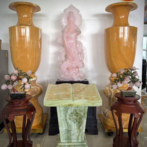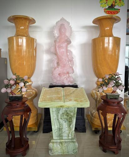 Phật Thích Ca. Tượng được làm bằng đá hồng ngọc xuất xứ Pakistan nguyên khối, Diện tượng đẹp, các đường nét được chạm khắc tỉ mỉ và tinh xảo. Cam kết sản phẩm được làm từ 100% đá tự nhiên, nguyên khối. Cam kết hoàn tiền 100%nếu phát hiện sản phẩm là bột đá, hàng giả, hàng kém chất lượng CTY TNHH TM DV ĐIÊU KHẮC BÌNH MINH xin gửi tới quý khách hàng, đối tác Các sản phẩm được làm bằng chất liệu đá với kiểu dáng mẫu mã đẹp, chạm khắc tinh xảo, được khai thác từ mỏ đá tự nhiên các sản phẩm được chế tác từ các loại Ngọc, đá xanh, đá trắng, đá vàng, đá đen, đá cẩm thạch… được lựa chọn kỹ lưỡng từ những mỏ đá tốt nhất trước khi được đưa về xưởng gia công chế tác. Tại CTY của chúng tôi các nghệ nhân được đào tạo từ các trường Đại học, như trường đại học mỹ thuật, kiến trúc...Có nhiều năm kinh nghiệm. Nhiều năm qua các tác phẩm do CTY TNHH TM DV ĐIÊU KHẮC BÌNH MINH thực hiện đã được nhiều khách hàng, đối tác trong nước, quốc tế tin tưởng lựa chọn và được đánh giá cao. Chính vì điều đó Với tiêu chí: “Chữ Tín Vững Trọn Niềm Tin “ CTY chúng tôi luôn đặt Uy tín – Chất lượng lên hàng đầu. Mỗi Sản phẩm CTY làm ra phải đạt chất lượng tốt nhất, mẫu mã đẹp nhất, tính mỹ thuật cao nhất. Ngoài ra Cty chúng tôi luôn đảm bảo thời hạn – Giao hàng tận nơi trong và ngoài nước. Chúng tôi luôn có những chính sách ưu đãi giá cả cạnh tranh, ngoài ra chúng tôi hoàn toàn chịu trách nhiệm về các công đoạn thi công và bảo hành sản phẩm do chính mình làm ra. Cty chúng tôi luôn luôn lỗ lực và cố gắng nhiều hơn nữa để mỗi ngày có được nhiều sản phẩm đẹp hơn, chất lượng hơn, mẫu mã đẹp hơn, hoàn hảo hơn, tinh xảo hơn tạo điều kiện thuận lợi cho quý khách hàng có sự được lựa chọn về những sản phẩm tốt nhất mỹ thuật tốt nhất, dịch vụ tốt nhất. Quý khách hàng có nhu cầu xin vui lòng liên hệ: CTY TNHH TM DV Điêu Khắc Bình Minh Địa Chỉ: 797A Quốc Lộ 13 P Hiệp Bình Phước Q Thủ Đức TP HCM ( Ngay Góc Ngã 4 Bình Phước) Hotline : 0989045052 Mr Tư - 0908448280 Ms Hiếu