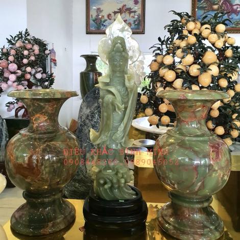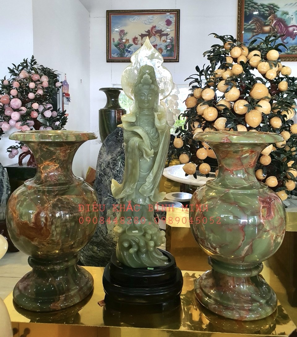 Phật bà quan âm là biểu hiện cho sự tu luyện khổ hạnh và lòng nhân từ bác ái phổ độ chúng sinh. Chính vì thế người có danh hiệu là Đại từ Đại bi Quan thế âm bồ tát. Người luôn bên cạnh, cứu độ và mang lại bình an cho nhân gian. Tượng được làm bằng granite. Diện tượng đẹp, các đường nét được chạm khắc tỉ mỉ và tinh xảo. Cam kết sản phẩm được làm từ 100% đá tự nhiên. Cam kết hoàn tiền 100% nếu phát hiện sản phẩm là bột đá, hàng giả, hàng kém chất lượng CTY TNHH TM DV ĐIÊU KHẮC BÌNH MINH xin gửi tới quý khách hàng, đối tác Các sản phẩm được làm bằng chất liệu đá với kiểu dáng mẫu mã đẹp, chạm khắc tinh xảo, được khai thác từ mỏ đá tự nhiên các sản phẩm được chế tác từ các loại Ngọc, đá xanh, đá trắng, đá vàng, đá đen, đá cẩm thạch… được lựa chọn kỹ lưỡng từ những mỏ đá tốt nhất trước khi được đưa về xưởng gia công chế tác. Tại CTY của chúng tôi các nghệ nhân được đào tạo từ các trường Đại học, như trường đại học mỹ thuật, kiến trúc...Có nhiều năm kinh nghiệm. Nhiều năm qua các tác phẩm do CTY TNHH TM DV ĐIÊU KHẮC BÌNH MINH thực hiện đã được nhiều khách hàng, đối tác trong nước, quốc tế tin tưởng lựa chọn và được đánh giá cao. Chính vì điều đó Với tiêu chí: “Chữ Tín Vững Trọn Niềm Tin “ CTY chúng tôi luôn đặt Uy tín – Chất lượng lên hàng đầu. Mỗi Sản phẩm CTY làm ra phải đạt chất lượng tốt nhất, mẫu mã đẹp nhất, tính mỹ thuật cao nhất. Ngoài ra Cty chúng tôi luôn đảm bảo thời hạn – Giao hàng tận nơi trong và ngoài nước. Chúng tôi luôn có những chính sách ưu đãi giá cả cạnh tranh, ngoài ra chúng tôi hoàn toàn chịu trách nhiệm về các công đoạn thi công và bảo hành sản phẩm do chính mình làm ra. Cty chúng tôi luôn luôn lỗ lực và cố gắng nhiều hơn nữa để mỗi ngày có được nhiều sản phẩm đẹp hơn, chất lượng hơn, mẫu mã đẹp hơn, hoàn hảo hơn, tinh xảo hơn tạo điều kiện thuận lợi cho quý khách hàng có sự được lựa chọn về những sản phẩm tốt nhất mỹ thuật tốt nhất, dịch vụ tốt nhất. Quý khách hàng có nhu cầu xin vui lòng liên hệ: CTY TNHH TM DV Điêu Khắc Bình Minh Địa Chỉ: 797A Quốc Lộ 13 P Hiệp Bình Phước Q Thủ Đức TP HCM ( Ngay Góc Ngã 4 Bình Phước) Hotline : 0989045052 Mr Tư - 0908448280 Ms Hiếu